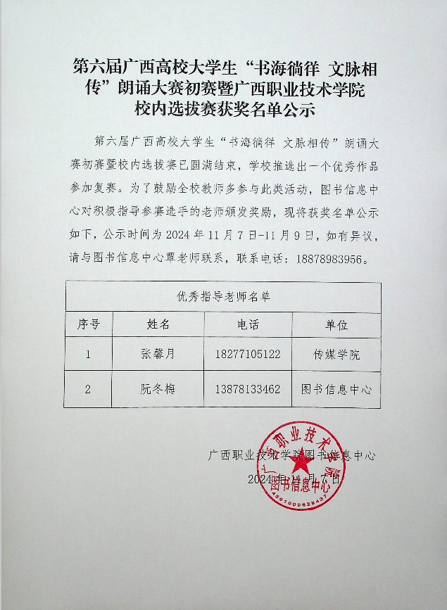 第六届广西高校大学生“书海徜徉 文脉相传”朗诵大赛初赛暨校内选拔赛获奖名单公示