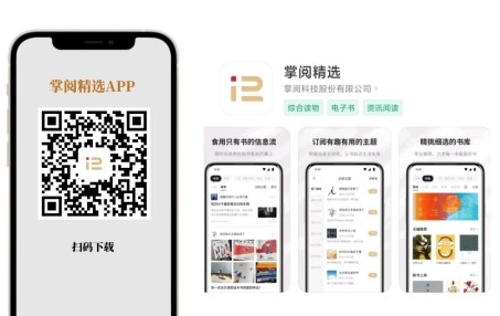 (3)扫描下方二维码下载并打开掌阅精选APP,通过第一步注册时使用的手机号登录即可。