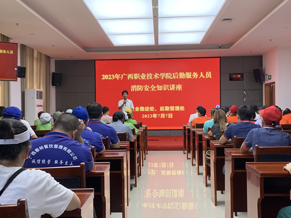为进一步增强从业人员的消防安全意识,压紧压实食品安全及消防安全主体责任,近期,我校相继举办了食品安全培训及消防安全知识培训。2023年7月7 日,后勤管理处联合安稳处在教学综合楼西侧二楼会议室开展“2023年万象城网页版后勤服务人员消防安全知识讲座培训”,校内食堂及商铺员工、食品科全体人员等近百人参加此次培训,后勤管理处李开三副处长出席并做了动员讲话,此次培训由安稳处袁长江培训主讲。