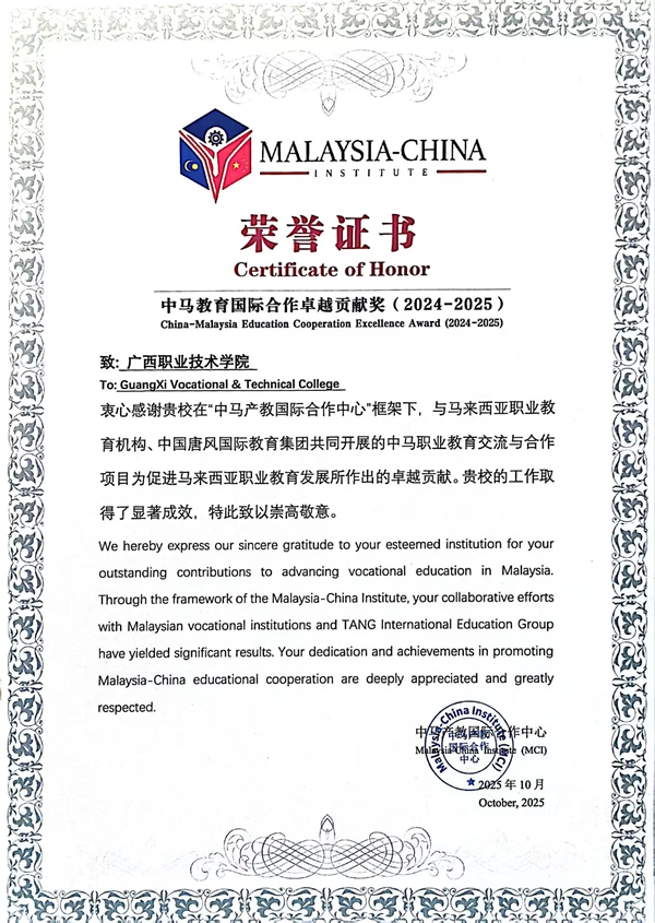 学校荣膺中马教育国际合作卓越贡献奖四门课程获马来西亚认证