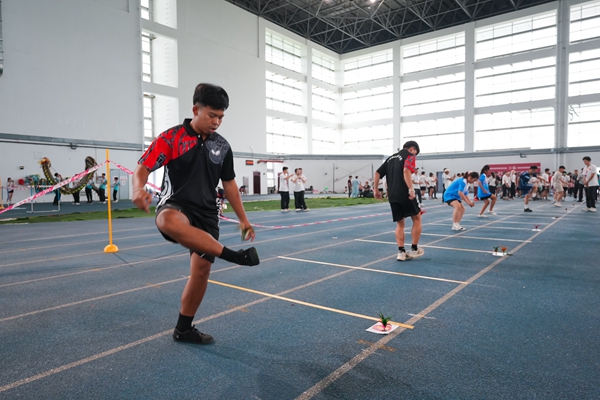 赛前,学校国际教育学院、通识教育学院相关教师组织和指导国际学生进行了专项训练。最终,在民族体育运动会竞技环节中,泰国籍学生陈子豪勇夺男子个人毽球冠军,老挝籍学生张龚何荣获男子个人毽球亚军;老挝籍学生安成、张敏赛、王大能组成的男子三人板鞋代表队斩获亚军。