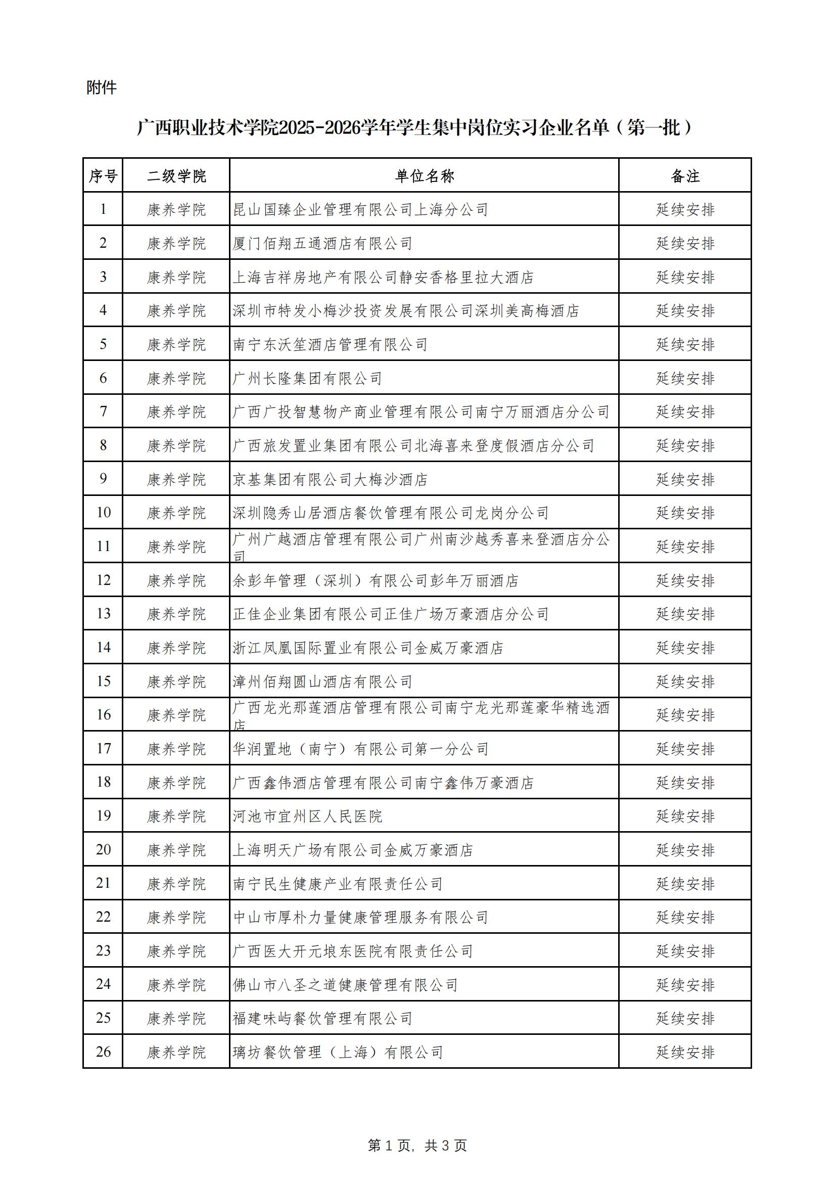 关于学院2025-2026学年学生集中岗位实习企业名单(第一批)的公示