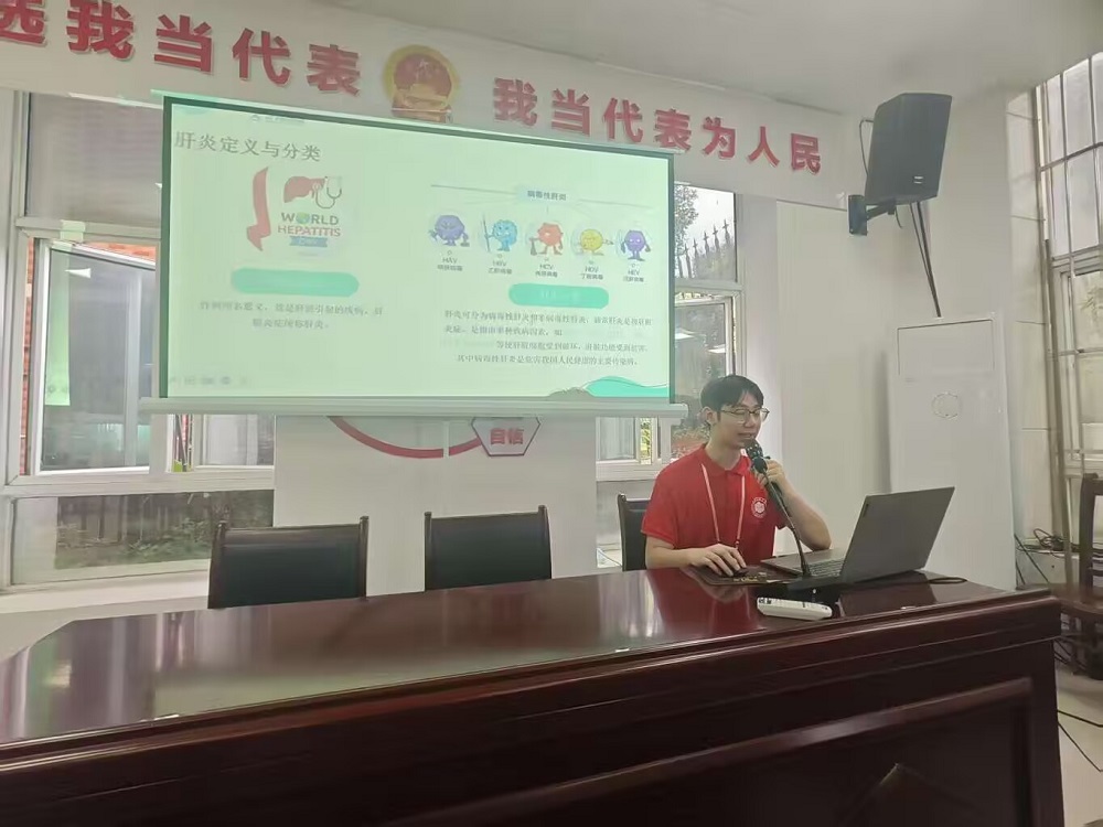 活动当天,志愿宣讲团率先为社区群众带来了一场专业且生动的肝炎防治知识讲座。志愿者们通过丰富详实的案例分析、深入浅出的理论讲解,从肝炎的发病机制、常见类型,到具体的传播途径、科学预防方法以及日常保健要点,进行了全面细致的阐述。为确保讲座内容通俗易懂、便于记忆,志愿者们前期查阅大量资料,向卫生所医生求证,结合社区居民实际需求,精心制作了图文并茂、内容丰富的宣传手册。