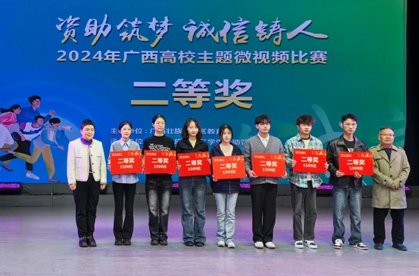 11月24日,2024年全区高校“资助筑梦 诚信铸人”主题微视频比赛决赛在广西艺术学院举行。我校参赛作品《资助之光 助梦远航》与来自区内高校的20支参赛队同台比拼,最终荣获二等奖的好成绩。