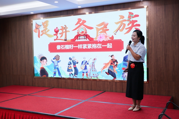 周元玲老师作为“青年说理”选手,以“促进各民族像石榴籽一样紧紧抱在一起”为题进行现场展示,其观点鲜明、逻辑严谨且富有感染力,充分展现出学校青年教师扎实的理论功底与良好的表达能力。