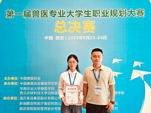 8月23日,由中国兽医协会主办的第一届兽医专业大学生职业规划大赛总决赛在西安国际会展中心圆满落幕。经过与来自全国37所职业院校选手的激烈角逐,最终由学校农业工程学院杨曜宇、罗蔼剑两位老师指导的2023级畜牧兽医(宠物美容与诊疗方向)专业学生彭昕瑜斩获一等奖。