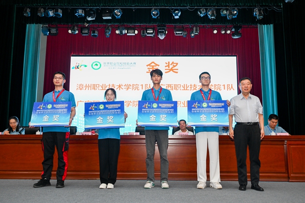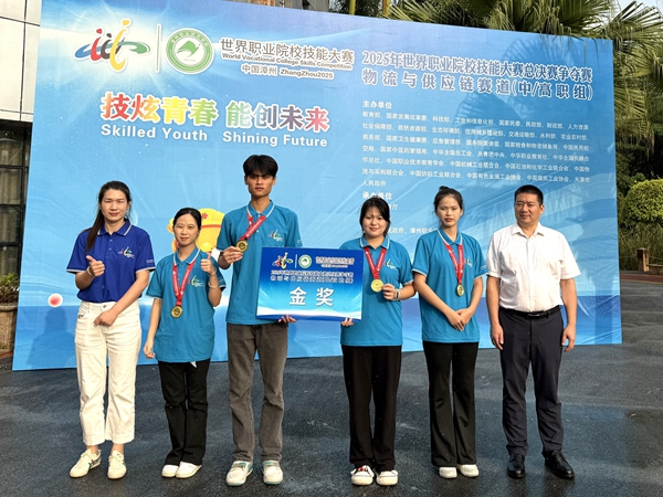 8月31日,2025年世界职业院校技能大赛总决赛争夺赛物流与供应链赛道(高职组)在漳州职业技术学院圆满落幕。由学校物流学院薛文、吴砚峰两位老师指导,周文淞、黄彩萍、陈颖怡、巫巧莉四名学生组成的参赛团队,以卓越的专业技能和团队协作能力脱颖而出,勇夺金奖,并成功晋级全国排位赛。