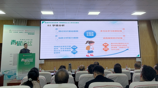 会上,戴瑞老师以“善用学校场馆资源 释明新民主主义革命总路线”为题作教学展示。他围绕学校近年打造的“场馆里的思政课”“行走在边境线上的思政课”等“大思政课”教学品牌,通过“场馆学史—问题启思—绘表悟理—研学力行”四个环节,就善用学校场馆资源,上好“新民主主义革命总路线”教学专题,进行教学展示。