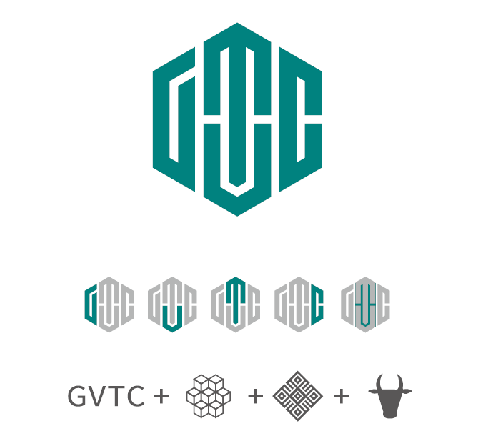 在设计元素上,融汇应用了学校英文简写GVTC、鲁班锁、壮锦纹、牛精神等符号元素;