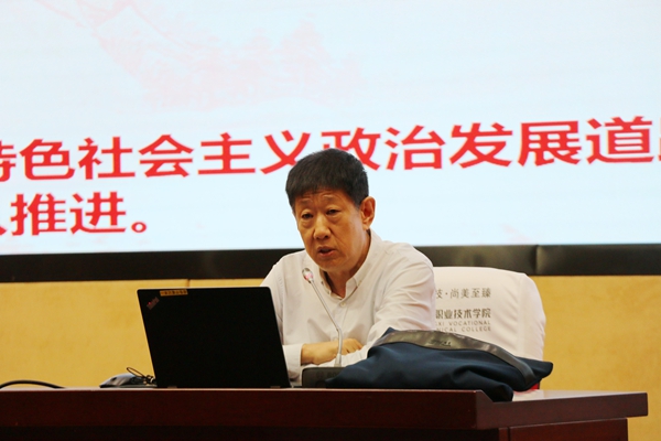 韩伟平紧密结合党的二十大精神,从如何认识和理解新时代、新时代大学生的使命和追求、新时代对优秀大学生的要求、怎样才能成为当代优秀大学生等方面进行阐述,他勉励入党积极分子们要从不同的角度全方位认识当下所处的新时代,明确在新时代中青年大学生的角色和使命担当,坚定听党话、跟党走的理想信念,树立正确的人生观、价值观和世界观,永葆肯吃苦、不怕苦的奋斗精神,养成爱读书、善读书的生活习惯,做德智体美劳全面发展的新时代大学生,扎根中国大地,扎根人民群众,担负起时代赋予的责任和使命。