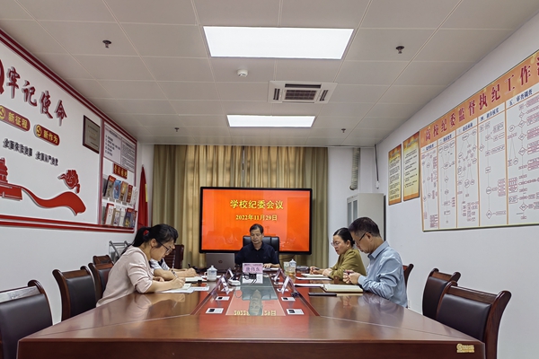 11月29日,学校纪委召开2022年纪委会议,会议由学校纪委副书记、纪检监察室(纪委办公室)主任林玉琼主持,学校纪委书记唐伟东及纪委委员出席会议,纪检监察科长、纪检监察干事参加会议。