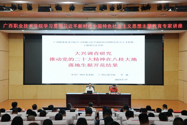 5月17日,中共广西区委党校(广西行政学院)校务委员李波教授应邀为学校作题为“大兴调查研究 推动党的二十大精神在八桂大地落地生根开花结果”的专题讲座。